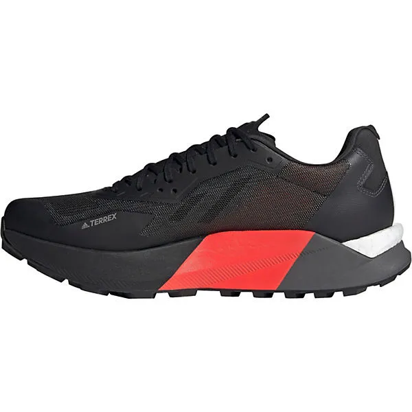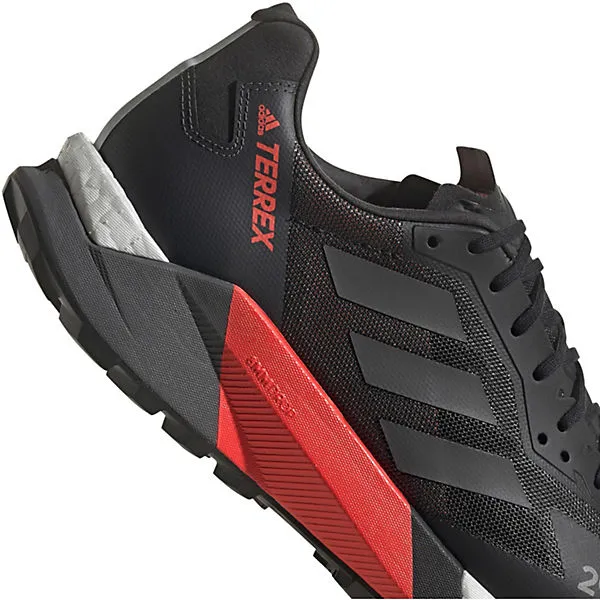 Strapazierfähige Trailrunningschuhe mit Inlay aus biobasiertem TPE (Thermoplastisches Elastomer), das aus 90 % erneuerbarem Carbon besteht, welches den Fuß auf langen, anspruchsvollen Strecken in den Bergen schützt und unterstüzt; Obermaterial aus offenporigem Mesh und aufgeschweißten, abriebfesten Synthetik; klassische Schnürung; Zunge und Schaft gepolstert; Textilfutter; passgenauer Mittelfuß-, etwas breiterer Zehenbereich; Kombination aus BOOST™- und Lightstrike-Technologie für eine hervorragende Dämpfung; 2-lagiger Achillessehnen-Schutz; schützende Platte in der Zwischensohle; stark profilierte Außensohle aus Continental™-Gummi; 3-Streifen-Design; dieses Primegreen-Produkt wurde aus recycelten Materialien hergestellt, um Kunststoffabfälle zu vermeiden; für Neutralläufer mit normaler Pronation geeignet.