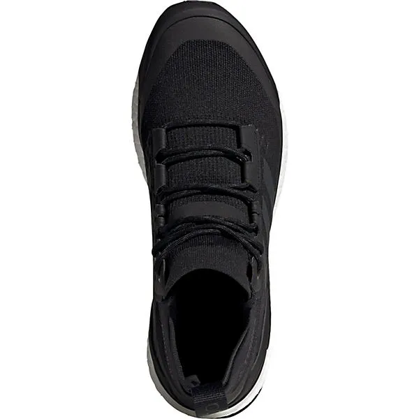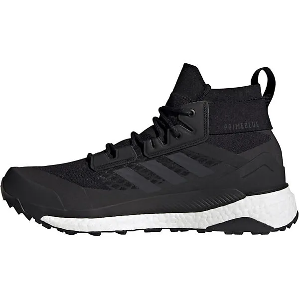Wanderschuhe mit sockenähnlichem Tragegefühl durch weiches Primeknit-Obermaterial; ideal für lange Wanderungen; mittelhoher Schaft; stabilisierender EVA-Rahmen; runde Schnürsenkel; Zuglasche an der Ferse; Logodetail; 3-Streifen an der Seite; BOOST™-Mittelsohle für eine hervorragende Dämpfung und Energierückgewinnung; Außensohle mit Continental™-Gummi für hervorragenden Grip auch bei Nässe; mit Primeblue-Material, welches zum Teil aus Parley Ocean Plastic® besteht, das aus recyceltem Plastikmüll hergestellt wird.