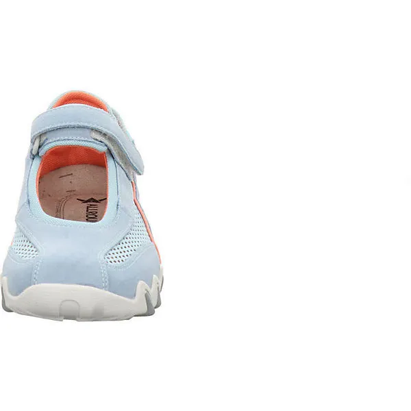 Luftiger Freizeitschuh von Allrounder. Das Obermaterial besteht aus einem Mix aus Veloursleder mit luftigen Einsätzen aus Mesh, das Futter aus Textil. Dank der beiden stufenlos verstellbaren Klettriemen passt sich dieser schöne Schuh Ihrem Fuß optimal an. Die Innensohle ist herausnehmbar. Für Ihren persönlichen Gehkomfort können Sie Ihre eigenen Einlagen einsetzen. Mit der dämpfenden Shock Absorber Sohle aus Kautschuk haben Sie jederzeit besten Halt. Besonders modisch sind die harmonierenden Konstrastfarben. Ein Schuh, perfekt für die Abenteuer des Alltags!