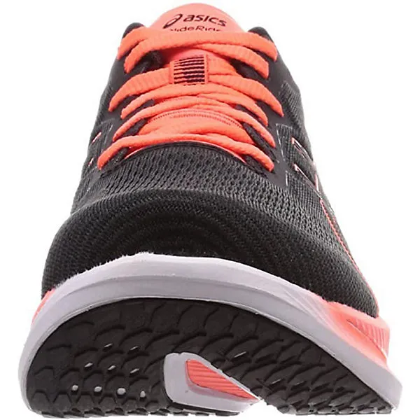 Der GLIDERIDE™ Schuh ermöglicht es dir, mit weniger Energieverbrauch länger zu laufen. Die GUIDESOLE™-Technologie in dieser Sohle ist das wichtigste Merkmal des GLIDERIDE™-Schuhs. Und so funktioniert sie: Verbesserte Dämpfung reduziert bei jedem Schritt die benötigte Muskelkraft. Das wird durch die Kombination aus FLYTEFOAM™-Technologie und der GEL™-Technologie-Dämpfung erreicht. Der steife Vorderfuß und die dynamisch geschwungene Sohle erhöhen die Laufeffizienz, indem sie die Bewegung des Knöchelgelenks reduzieren. Ein geringerer Winkel bei der Beugung des Knöchels bedeutet, dass andere Muskeln, wie z. B. die Waden, weniger beansprucht werden. Zu viel Bewegung des Knöchels bei höheren Geschwindigkeiten bedeutet unnötigen Energieverlust. Der Massenschwerpunkt des Schuhs befindet sich näher an der Ferse, wodurch du deinen Fuß leichter nach vorne bewegst. Die Abrollbewegung, die du in diesem Schuh spürst, treibt den Fuß vorwärts. Das sorgt für mehr Effizienz, da die Vorwärtsbewegung des Knöchels reduziert wird. Damit kannst du bei weniger Anstrengung weiter laufen. Diese Eigenschaften bieten Läufern ein absolut neues Lauferlebnis. Mit dem GLIDERIDE™-Schuh mit der GUIDESOLE™-Technologie kannst du Energie sparen und effizienter laufen. Du musst es einmal spüren, um es zu glauben.