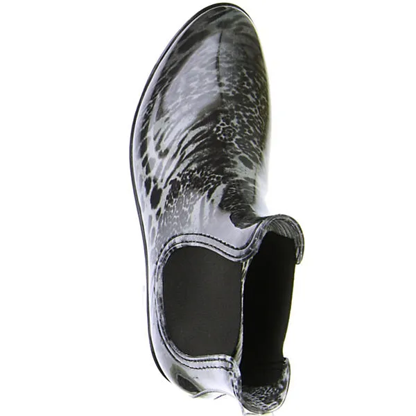Die Gummistiefel zeigen sich mit flexiblen Einsätzen an den Seiten und einer Anziehlasche im Schaftbereich. Der Schuh kann in Sekundenschnelle an- und ausgezogen werden. Durch das angebrachte Stretch-Material kann Wasser in die Schuhe eindringen, da dieses aus Textil besteht.