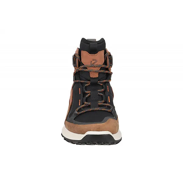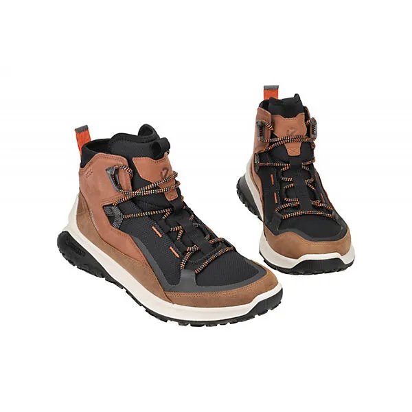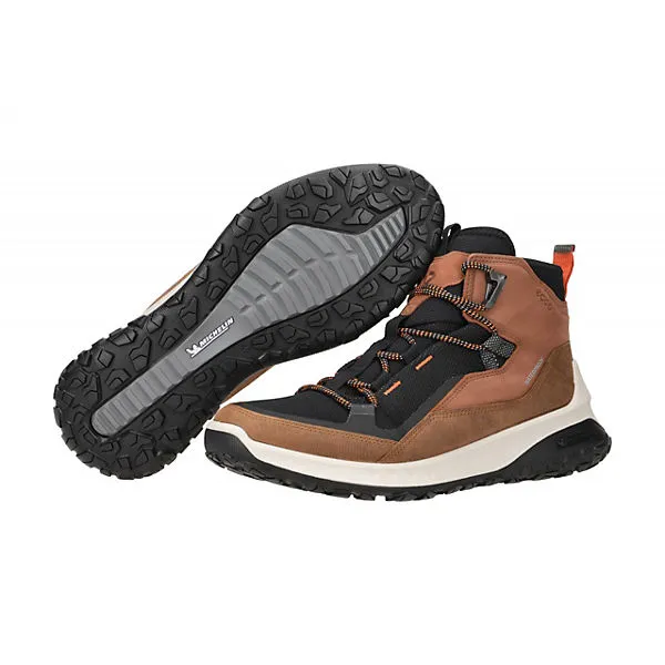 Hersteller: Ecco Hersteller Art-Nr.: 82427460592 Modellname: ULT-TRN Machart: Herrenstiefelette – Wanderstiefelette – Trekking Boots Farbe: hellbraun + schwarz + orange + weiß (sierra / cognac / black) Obermaterial: Velourleder + Textil / Mesh (Waterproof = wasserdicht) Innenfutter: Textil / Mesh – atmungsaktiv Innensohle: Textil Fußbett Wechselfußbett: Ja – herausnehmbare Innensohle Laufsohle: Gummisohle, MICHELIN Gummisohle Verschluss: 5fach Schnürung Absatzart: flach – kein Absatz Schafthöhe: Knöchelhoch, ca. 12cm Schuhform: rund Größenhinweis: fällt normal aus Weitenangabe: G – normal Weite