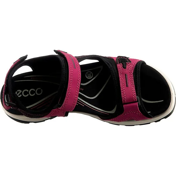– leichte Outdoorsandalen für Damen aus dem Hause Ecco – softes Textilfutter – drei Klettriemen an Ferse, Spann und Zehenbereich erlauben individuelle Weitenregulierung – weiche Schaftkante – strukturierte Decksohle mit leichtem Massageeffekt – robuste, profilierte und rutschhemmende Laufsohle für sicheren Halt