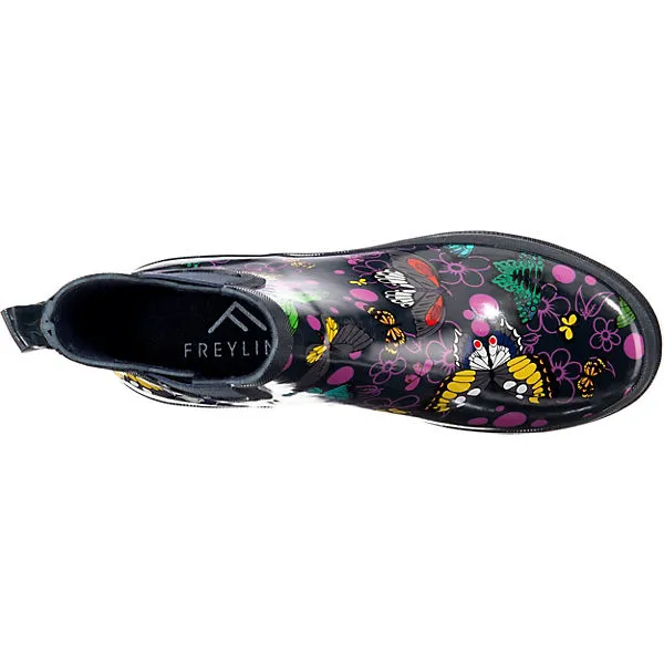 Die Gummistiefel der Marke Freyling sorgen auch bei Regen für angenehm trockene Füße. Der dezente Blockabsatz bietet einen modischen Look. Das Textilfutter aus Polyester ist anschmiegsam. Eine komfortable Fußanpassung ist durch das elastische Band ein Leichtes.