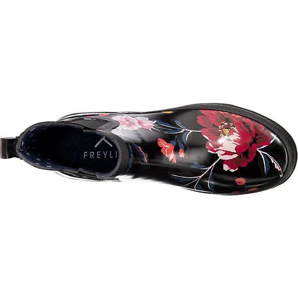Diese Gummistiefel der Marke Freyling sind bestens für Regenwetter geeignet. Der Blockabsatz kombiniert einen stilsicheren Auftritt mit hohem Komfort. Das Textilfutter aus Polyester ist angenehm anpassungsfähig. Ein sicherer Sitz am Fuß ist dank des elastischen Bandes kein Problem.