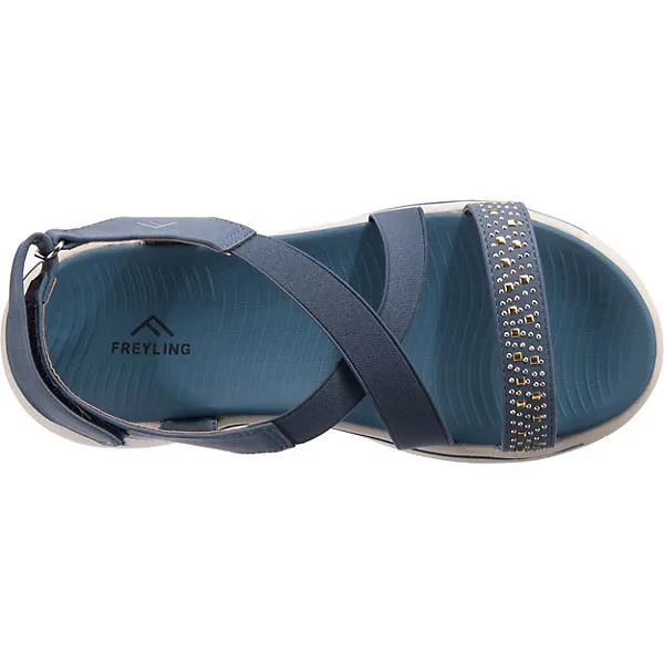 Strapazierfähige Begleiter für Aktivitäten im Freien: Die funktionalen Outdoorsandalen der Marke Freyling. Für ein komfortables Trageerlebnis besteht die Decksohle aus echtem Leder. Es handelt sich um ein Modell zum einfachen und schnellen Hineinschlüpfen.