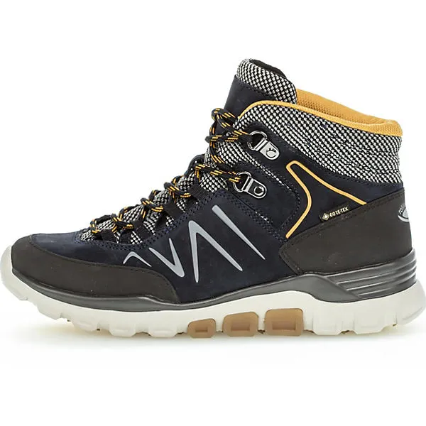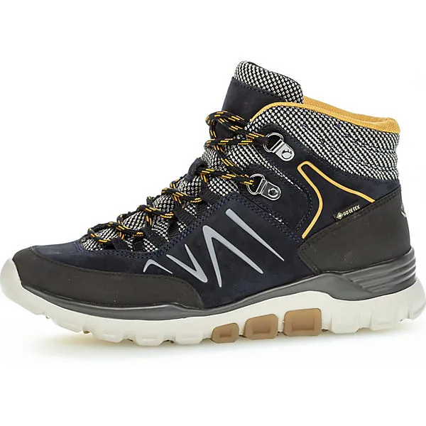 Praktische Begleiter für die Fortbewegung auf anspruchsvolleren Untergründen: Die funktional ausgestatteten Trekkingstiefel von der Marke Gabor. Das Obermaterial überzeugt durch das echte Veloursleder. Das Modell kommt ohne jeglichen Verschluss aus, sodass im Handumdrehen hineingeschlüpft werden kann.
