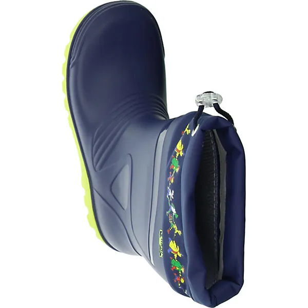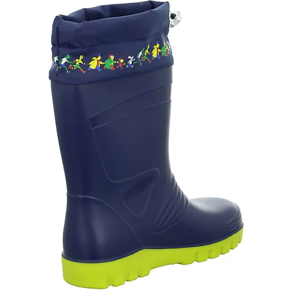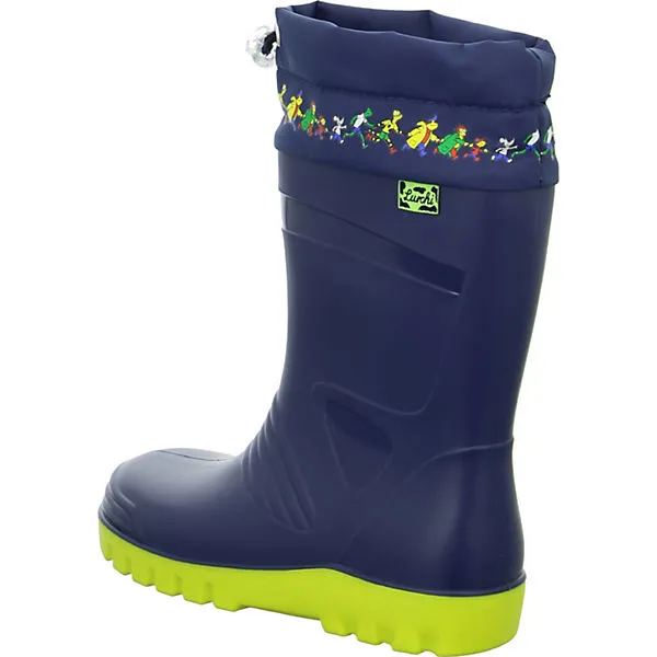 Für Ihre kleinen Lieblinge hat die Marke Lurchi by Salamander hier die Kinder Gummi-/ Regenstiefel Peer aus blauem Synthetikmaterial mit farbigem Print am Schaft. Das frische Grün der robusten Laufsohle sorgt zusätzlich für Fröhlichkeit an nassen matschigen Tagen im Regen oder Schnee. Am Schaftrand befindet sich ein Zuband zum Zusammenschnüren, somit sind Ihre Kids bestens geschützt vor Wind und Wetter und die Füße bleiben schön trocken. – herausnehmbare Decksohle – Cadmium, Nickel und Blei frei