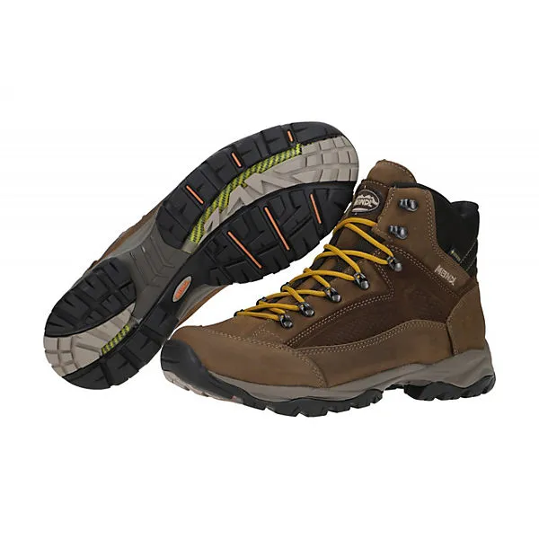 Hersteller: Meindl Hersteller Art-Nr.: 2964 32 Modellname: BALTIMORE GTX Machart: Herrenstiefelette – Wanderstiefelette – Trekking Boots Farbe: braun + grau + gelb + Sohle in schwarz (kastanie / senf) Obermaterial: Echtleder – Nubuck (GORE-TEX = wasserdicht) Innenfutter: Textil und Echtleder Innensohle: Textil Komfort Fußbett Wechselfußbett: Ja – herausnehmbare Innensohle Laufsohle: robuste Profil Gummisohle Verschluss: 6fach Schnürung Absatzart: flach – kein Absatz Schafthöhe: Knöchelhoch, ca 14cm Schuhform: rund Größenhinweis: fällt 1 Nummer kleiner aus (größer kaufen) Weitenangabe: G – normal Weite