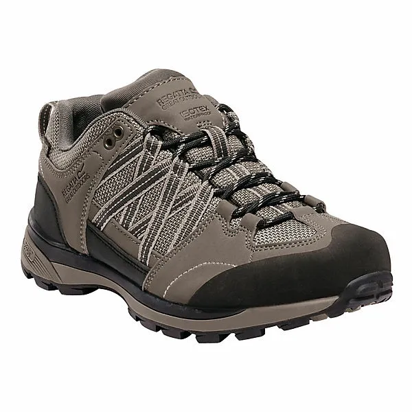 Der Regatta Lady Samaris Low II ist ein kurzer wasserdichter Wanderschuh für Damen. Er bietet hohen Komfort und ist durch seine verschweißten Nähte wasserdicht. Er überzeugt durch seine wasserabweisende Hydropel Technologie sowie durch seine tief gepolsterte Knöchel- und Zungenpartie. Der Zehenbereich besteht aus Gummi, an den Fersen ist er mit einem Fersenschutz ausgestattet. Das EVA-Komfortfußbett und die stabilisierende Schafttechnologie machen den Samaris Mid II zu einem perfekten Wanderschuh für leichte Touren im Mittelgebirge und anderen Outdoor-Aktivitäten bei schlechtem Wetter.