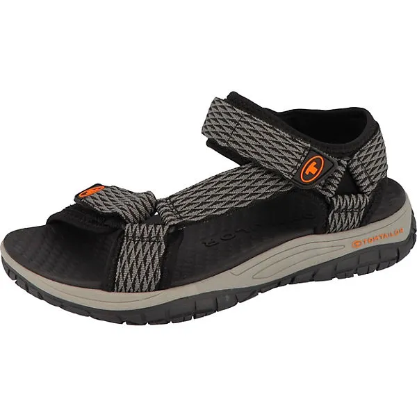 Die Outdoorsandalen der Marke TOM TAILOR sind ideale Begleiter für Aktivitäten auf anspruchsvolleren Untergründen. Der Klettverschluss garantiert eine individuelle Anpassung an den Fuß sowie einen sicheren Sitz. Diese Schuhe überzeugen mit einem Futter aus Polyester. Die textile Oberfläche ergänzt das Design des Modells.