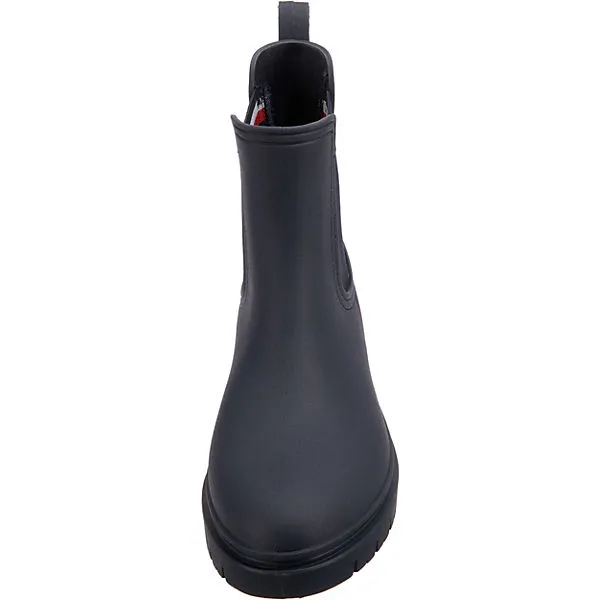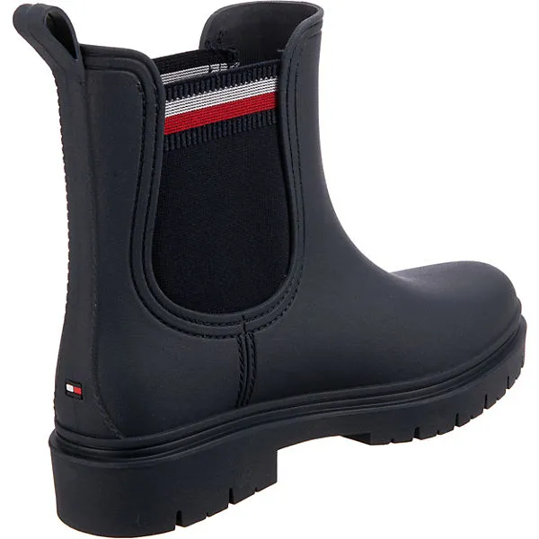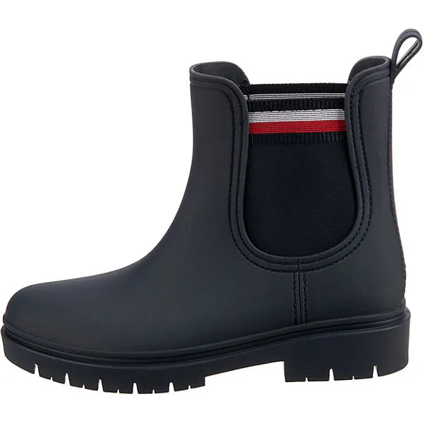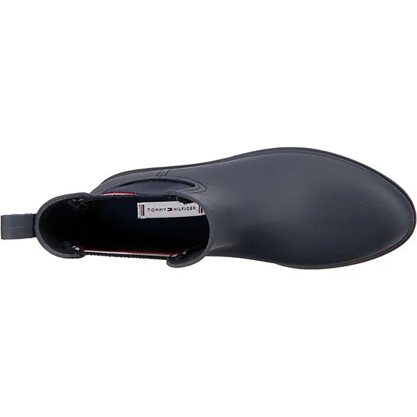 Die Gummistiefel aus dem Hause TOMMY HILFIGER sind optimal für verregnete Tage geeignet. Das Futter aus Polyester passt sich gut an den Fuß an.