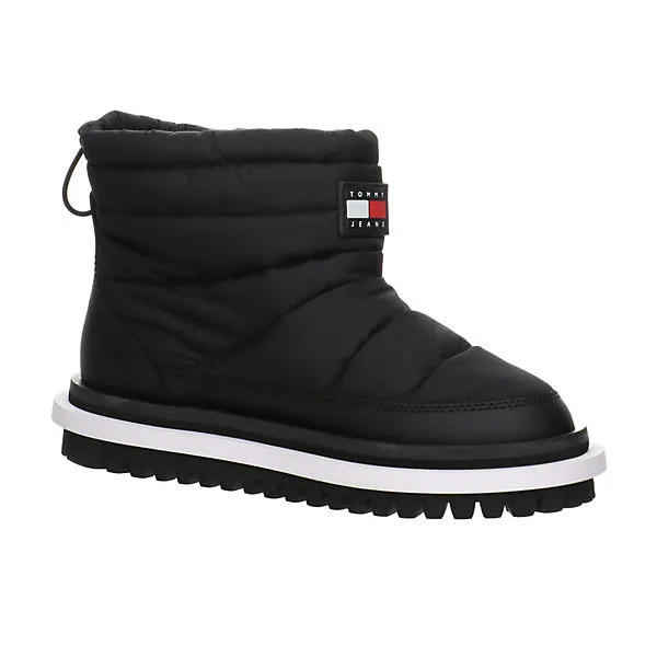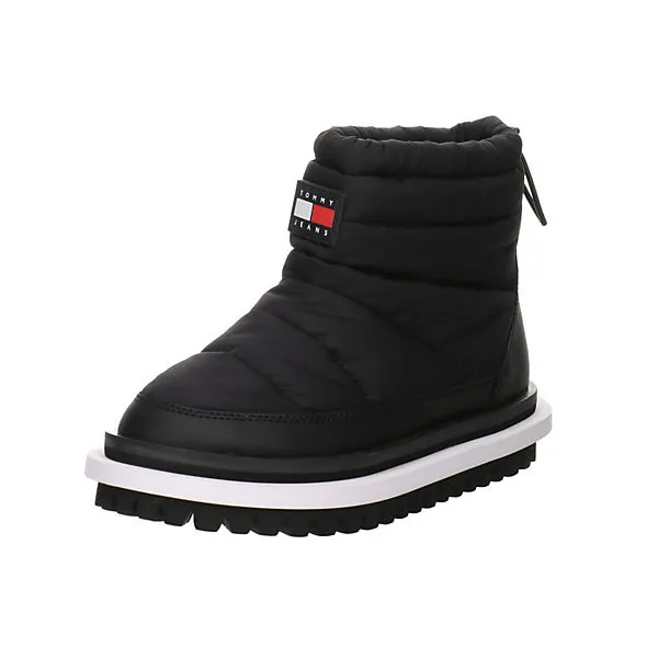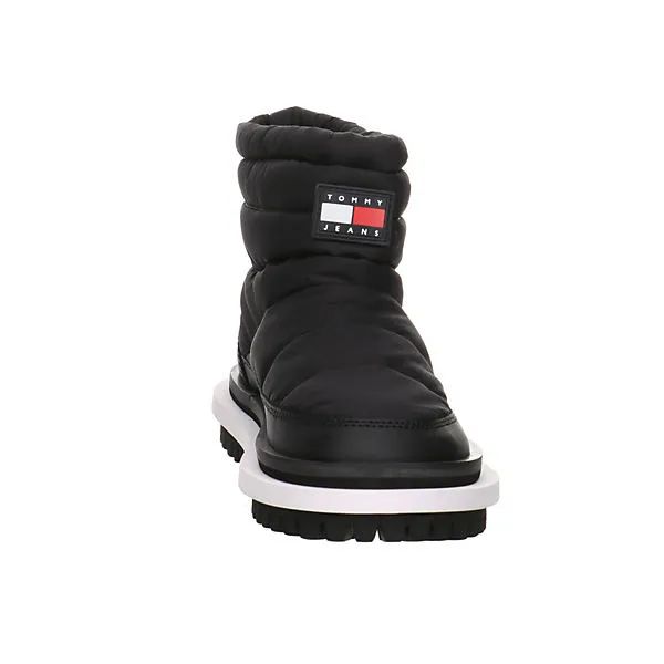 Diese Snowboots der Marke Tommy Jeans sind ein echter Hingucker diesen Winter. Die warmen Boots bestehen aus mindestens 50% recyceltem Polyester (*Bordüren und textilfreie Bestandteile ausgenommen). Das Synthetikobermaterial, die Lederapplikationen als Bordüre und an der Fersenkappe, sowie die markante und auffällige Profilsohle sorgen für einen modischen Look, der ins Auge sticht. Über den Schnellverschluss und das eingelassene Gummiband an der Oberseite lassen sich die Winterboots perfekt an Ihren Fuß anpassen. Den stilvolle Begleiter für die kalten Tage haben Sie mit diesen Schuhen von Tommy Jeans definitiv gefunden.