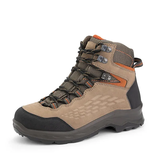 Der hohe Wanderschuh Aborg von Travelin‘ ist ein wasserdichter Wanderschuh, der für alle Wetterbedingungen und Jahreszeiten gemacht ist. Der Wanderstiefel ist aus hochwertigem Glattleder und Nubuk gefertigt, wobei die Innefnseite mit einer wasserdichten Membran aus Nylongewebe versehen ist. Die Einlegesohle ist herausnehmbar. Die Wanderschuhe haben eine griffige Gummiprofilsohle, die bis über den Knöchel reicht und so dem Fuß mehr Halt gibt.