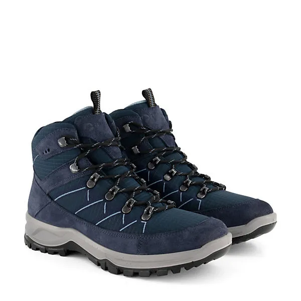Dieser hohe Wanderschuh Svendborg der Marke Travelin‘ ist ein wasserdichter Schuh, der für alle Wetterbedingungen und Jahreszeiten gemacht ist. Der Wanderschuh ist aus Veloursleder und atmungsaktivem Nylon gefertigt. Die Innenseite ist mit einer wasserdichten Nylon-Mesh-Membran ausgestattet. Die Profilsohle aus Naturkautschuk sorgt für eine gute Gehbewegung und verfügt über eine maximale Stoßdämpfung. Diese hohen Stiefel reichen bis über den Knöchel und geben dem Fuß dadurch mehr Halt. Das macht sie ideal für schwieriges Gelände.