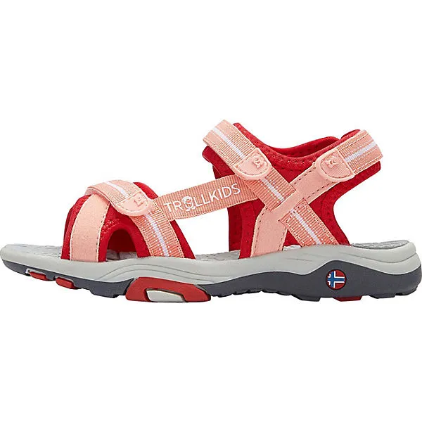 Die TROLLKIDS Kinder Outdoorsandalen sind mit drei Klettriegeln ausgestattet, die für eine optimale Fußanpassung und ein leichtes An- und Ausziehen sorgen. Die flexible, rutschhemmende Profil-Laufsohle verfügt über eine Stoßdämpfung im Fersenbereich.