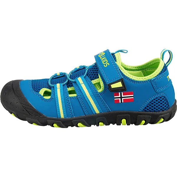 Ideal für steigende Temperaturen eignen sich diese TROLLKIDS Kinder Outdoorsandalen SANDEFJORD mit elastischen Riemen am Spann, die eine angenehme Passform verleihen. Die verstärkten Zehenpartien bieten optimalen Schutz.