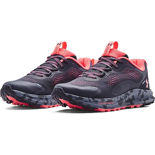 Trailrunning-Schuhe mit hervorragender Dämpfung und Bodenhaftung, auch in schlammigem Gelände; leichtes, 2-farbiges Mesh-Obermaterial mit strapazierfähigen Überzügen; normale Schnürung; Zuglaschen vorne und hinten; vorgeformte Einlegesohle; reaktionsfreudige Charged Cushioning®-Mittelsohle; strapazierfähige Gummi-Außensohle mit technischen Trail-Profilstollen; Sprengung: 8 mm; Pronation neutral.